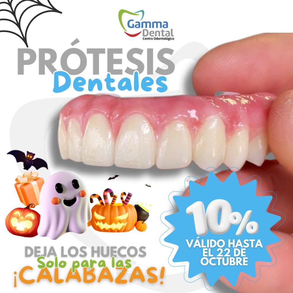 Este Halloween, en Gamma Dental te traemos un descuento especial en prótesis dentales para que recuperes tu sonrisa y vuelvas a morder sin miedo.
